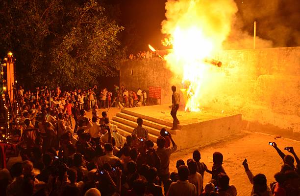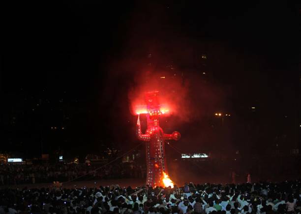 According to Ramayana, Ravana who was a demon king of Lanka, kidnapped Lord Rama's wife, Sita. He took her to his kingdom Lanka and held her captive. Lord Rama travelled to Lanka with his brother Lakshman, Lord Hanuman, and an army of monkeys. There he killed the ten-headed demon, Ravana on the tenth day of the battle. Since then, the 10 heads of Ravana effigies are burnt every year on Dashami. The burning of Ravana effigies symbolises the triumph of good over evil.