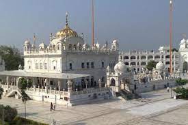 Hazur Sahib (Hazūrī Sāhib; lit. 'presence of the sahib/master'), also known as Takht Sachkhand Sri Hazur Abchalnagar Sahib, is one of the five takhts in Sikhism. It is located on the banks of the Godavari River at the city of Nanded in the state of Maharashtra, India. The gurdwara within the complex is known as Sach-Khand (Realm of Truth).[1] The structure is built at the place where Guru Gobind Singh left his earthly life. The inner room of the gurdwara is called the Angitha Sahib and is built over the place where Guru Gobind Singh was cremated in 1708. The gurdwara was built between 1832 and 1837 by order of Maharaja Ranjit Singh (1780–1839). Hazur Sahib marks the site where Guru Gobind Singh had his camp in 1708. The Guru held his court and congregation here and was convalescing after being attacked by two would-be assassins. One of the attackers stabbed the Guru, and was killed by him with a single stroke of his talwar (curved sword). The other was killed by his followers as he tried to escape. The Guru's wound was deep, but initially healed after being stitched by an English surgeon sent by Bahadur Shah I, who served as his doctor, and Dara Shikoh before him.[2] However the wound re-opened a few days later when the Guru was stringing a bow for one of his Sikhs and the Guru merged into the Primal (Joti Jot) after declaring the Guru Granth Sahib as his successorThe Sikhs built a room over the platform where Guru Gobind Singh would sit while holding his court and installed the Guru Granth Sahib on it. They called it Takhat Sahib. Guru Gobind Singh, while conferring Guruship on the holy Book, had himself named Nanded as "Abchalnagar" (literally "Steadfast city") after the first word of a hymn read at random on the occasion. In October 2008, the 300th-anniversary celebration of the Guruship of Guru Granth Sahib took place here. This site is now one of five Takhats which are places of primary importance to the Sikhs. The other four takhats are: Akal Takhat at Amritsar, Takhat Keshgarh Sahib at Anandpur, Takhat Patna Sahib in Bihar and Takhat Damdama Sahib in Talwandi Sabo, Bhatinda, Punjab